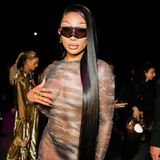 I když Megan patří v odívání mezi ty odvážnější, tentokrát se chvílemi zdálo, že sebevědomím překypující zpěvačka chvílemi přeci jen váhala, zda je vše v pořádku na svém místě. Cestou na přehlídku si totiž opatrně zakrývala rukou jedno ňadro a přes druhé měla přehozené vlasy. Na samotné show, kde seděla v první řadě vedle televizní osobnosti Leah Kateb, už o žádném maskování nemohla být řeč…