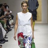 Módní dům ji totiž tentokrát oblékl do přísných siluet, těžkých materiálů a zvláštně vrstvených kombinací. Tlumené barvy, nedbale zcuchané vlasy, podbarvené oči a kamenný výraz. Místo svěží supermodelky přišla strohá, odtažitá figura. A to rovnou ve čtyřech různých modelech. Pod články z přehlídky se okamžitě rozjela lavina komentářů.