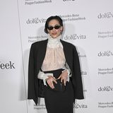 Přímo návrhářovu tvorbu reprezentovala v publiku modelka Denisa Dvořáková (36). Hedvábný komplet oblékla pouze přes podprsenku, se svou figurou nemá problém si to dovolit. Odhalila se také její kolegyně Aneta Vignerová (38). V krajkovém topu bradavky zakryla přelepkami.
