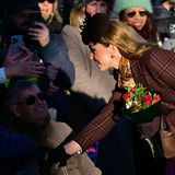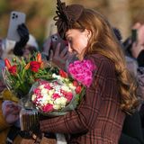 Na vánoční bohoslužbu oblékla hnědý károvaný kabát, hnědozlatý šátek a tmavě hnědý fascinátor. Ve stejném barevném tónu byla i sukně Gucci, kozačky a Gianvito Rossi a kabelka Demellier. Outfit pak doplnila luxusními náušnicemi Cartier.