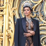 V rámci haute couture se v pondělí odehrála show, kterou si nenechala ujít Teyana Taylor, která je čerstvě nominovanou adeptkou na Oscara. Její krajkové šaty nenechávaly příliš prostoru pro představivost, a to i přesto, že je doplnila o dlouhý kabát smokingového stylu. Na výšce si pak přidala i lodičkami na vysokých podpatcích a platformě.