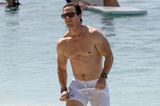 Svou formu tentokrát předvedl v tmavomodrých, zatímco jeho něžnější polovička nezůstala pozadu. Americká modelka v tyrkysových plavkách ukázala křivky, které popírají fakt, že je čtyřnásobnou maminkou! Manželé jsou totiž rodiči Elly (22), Michaela (19), Brendana (17) a Grace (15).