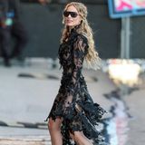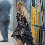 Herečka Margot Robbie (35) dorazila do studia Jimmy Kimmel Live v průhledných černých šatech značky Alexander McQueen, které samy o sobě stačily na to, aby se dostala do řečí. Transparentní krajka sice odhalovala hereččinu kůži, zároveň však dodávala outfitu temně romantický nádech. Květy byly navíc strategicky umístěné tak, aby zakryly, co je potřeba.