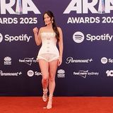 Na červený koberec dorazila v korzetu od libanonského návrháře Georgese Hobeiky, ke kterému si vzala jen jemné krajkové kalhotky. Bezkalhotový trend pojala jako umělecké dílo. Třpytivé náušnice, elegantní sandálky a účes v polovičním drdolu z ní udělaly éterickou vílu.