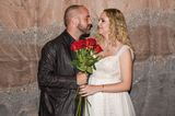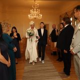 Svatba byla malá, jen se svědky. Nevěstu v bílých šatech, na které vzhledem k počasí panujícímu na konci října, oblékla krátký kožíšek, vedl k oltáři její syn. Oslava pro širší rodinu se konala až poté.