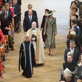Pozornost veřejnosti, ale i módních expertů, se ovšem v Canterbury upírala především na princeznu z Walesu, jejíž outfit do detailu rozebrali. Kate pro tuto významnou událost zvolila noblesní model, doplňky i šperky. Svůj elegantní šedý kašmírový kabát značky Suzannah s kontrastními černými klopami v hodnotě 2850 liber (80 600 korun) doplnila úchvatným kloboukem s pepito vzorem od Juliette Botterill Millinery za 690 liber (19 500 korun). Ten ji ovšem trochu potrápil, jelikož před katedrálou foukal silný vítr a Kate ho jen tak tak udržela na hlavě. Její typický úsměv ji ale přesto neopouštěl.