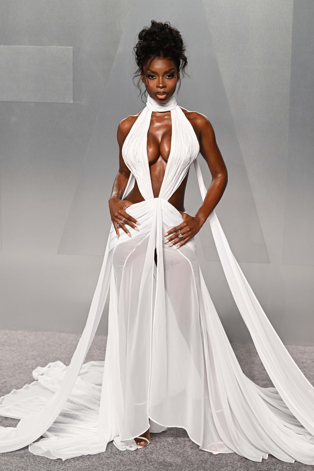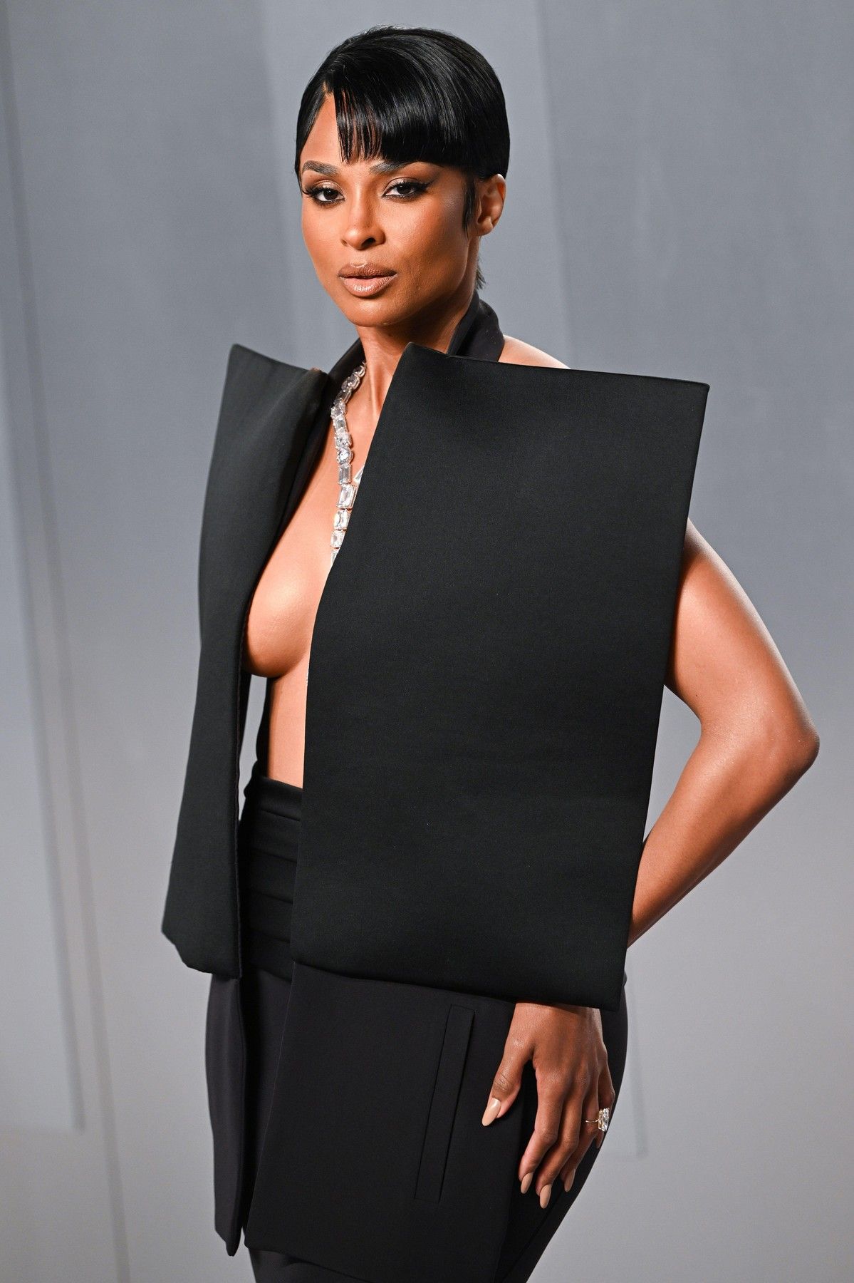 Americká zpěvačka Ciara na party dorazila ve velmi netradičním modelu. Pro fotografy vypadal efektivně, umělkyně ale měla co dělat, aby během chůze vše udržela na svém místě a neukázala víc, než bylo nutné.