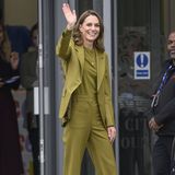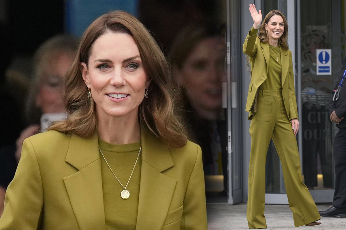 Na tuto návštěvu Kate zvolila zelený kalhotový oblek z dílny Victorie Beckham, který si vzala v den, kdy Netlfix uvedl nový dokument o zpěvačce a manželce Davida Beckhama. Zvolila sako, které se prodává v přepočtu za zhruba 24 tisíc korun a kalhoty za 14 tisíc korun v barvě „vrba“. A ve stejné barvě zvolila i tričko. Tento jednobarevný model se ale s příliš pozitivní odezvou nesetkal.