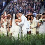 Jeden z nejsilnějších momentů večera však přišel ve chvíli, kdy se v záběru objevili dva snoubenci a řekli si své ano přímo během vystoupení. Zpočátku se zdálo, že jde jen o další efekt pro kamery, jenže tentokrát šlo o skutečnou, právně platnou svatbu. Pár původně pozval Bad Bunnyho na svůj obřad, ten jim ale navrhl něco mnohem většího. Svatbu před miliony diváků na stadionu. K prvnímu tanci jim vzápětí zapěla zpěvačka Lady Gaga (39). Později přidal krátký pěvecký vstup také Ricky Martin (54).