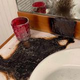 Spálený prostor kolem umyvadla, očazené zrcadlo a vedle stojící svíčka. K tomu strohý popisek: „Omylem jsem si podpálila koupelnu.“ Detaily, kdy a jak přesně k požáru došlo, si Sabrina nechala pro sebe. Podle snímku to ale vypadá na klasickou domácí nehodu, kdy svíčka vedle umyvadla dostala méně ochranného prostoru, než by potřebovala. Buď kolem ní vzplály věci, nebo se jednoduše převrhla.