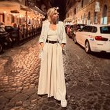 „Moc děkuju za mnoho pochval kalhot, které se mi v posledních dnech sešly. Přišla spousta dotazů, odkud že jsou, tak prosím pěkně, je to čerstvý úlovek z Říma z místního trhu, omlouvám se,“ prozradila.
