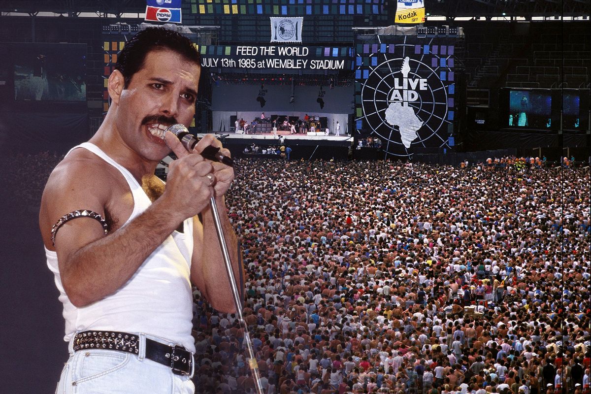 Stadion Wembley duní v sobotu 13. července 1985 pod náporem sedmdesáti tisíc hrdel, zatímco muž v bílém nátělníku ovládá dav pouhým gestem ruky. Legendární vystoupení v rámci akce Live Aid vchází do dějin jako největší rockové představení všech dob, jemuž nečekaně kralují britští Queen.