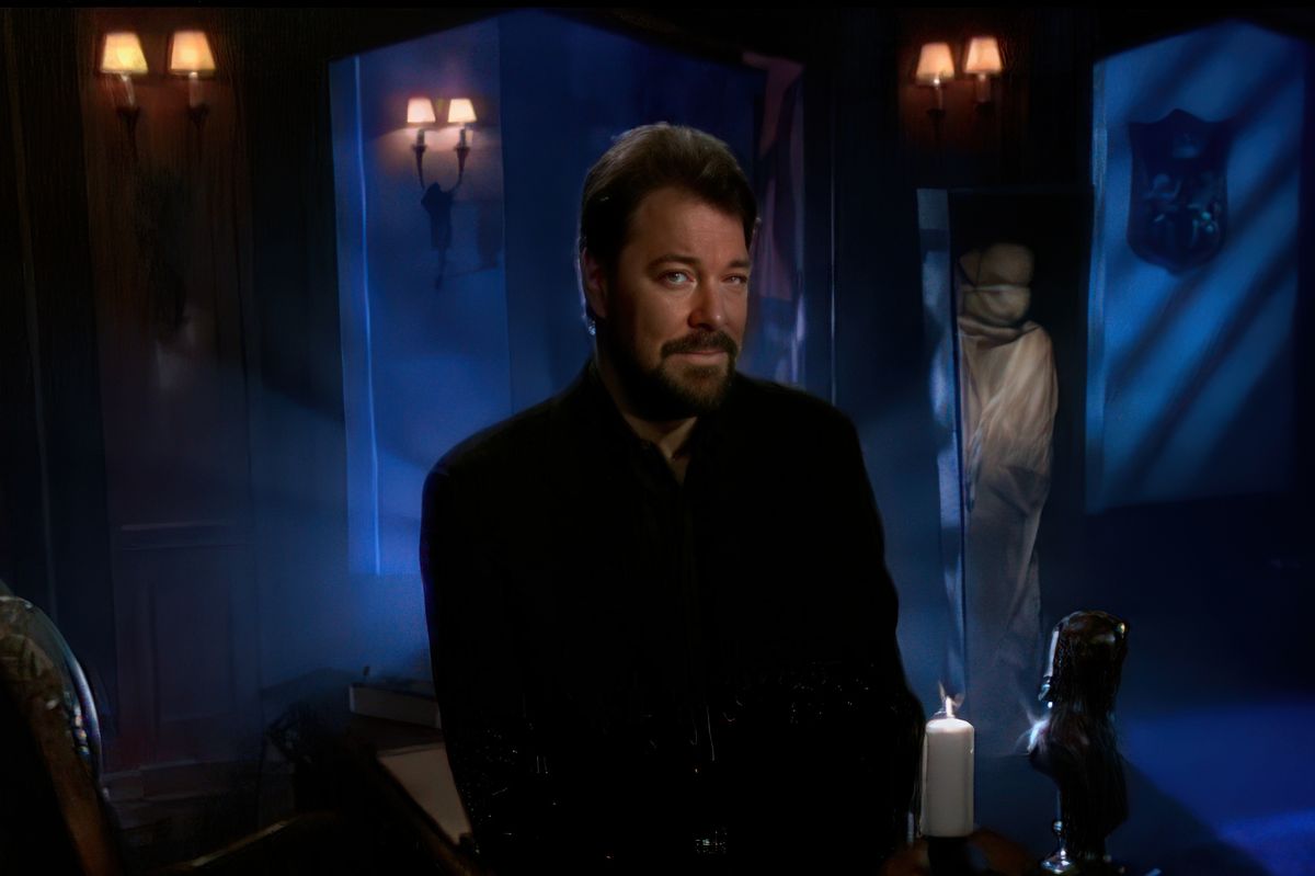 Podobně je tomu se strašidelnou hospodou „U modrého muže“. V tomto příběhu cestovatel v noci zabloudí do zapadlé krčmy, kde ho obsluhují podivní lidé. Ráno zjistí, že podnik už sto let neexistuje. Je to ale jen klasická „městská legenda“ přenesená na obrazovku. Frakes se později v rozhovoru smál: „Tohle bylo až moc i na nás.“